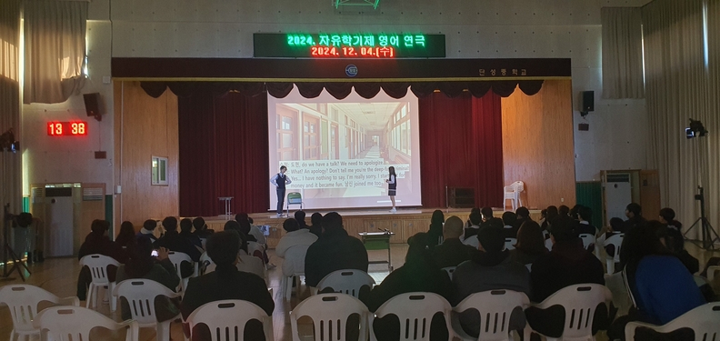 단양중은 지난 4일 자유학기제 프로그램의 하나로 학생들이 직접 기획하고 연출한 영어 연극 공연을 열었다.