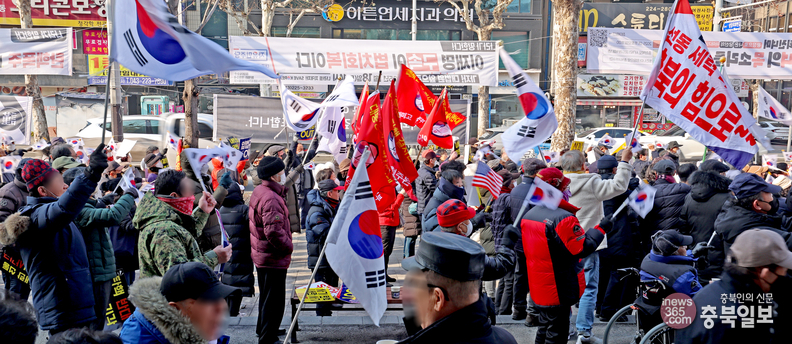 이 단체는 이날 충북도청 서문 앞에서 집회를 열고 "윤 대통령에 대한 탄핵은 이재명 대표의 방탄을 넘어 정권 찬탈의 수단"이라며 "지금 벌어지고 있는 탄핵·내란 선동은 단순한 정치 대립이 아니라 심각한 헌정질서 파괴와 체제 변화의 과정"이라고 주장했다.