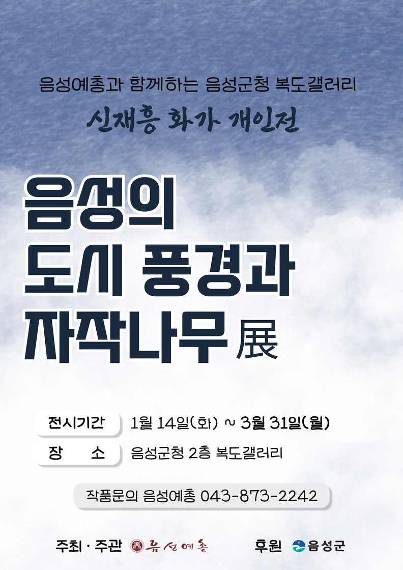 이번 전시회는 한국미술협회 음성지부 신재흥 화가의 개인전으로, '음성의 도시 풍경과 자작나무'를 주제로 고향을 향한 정서를 고스란히 담아낸 작품 40점이 전시된다.