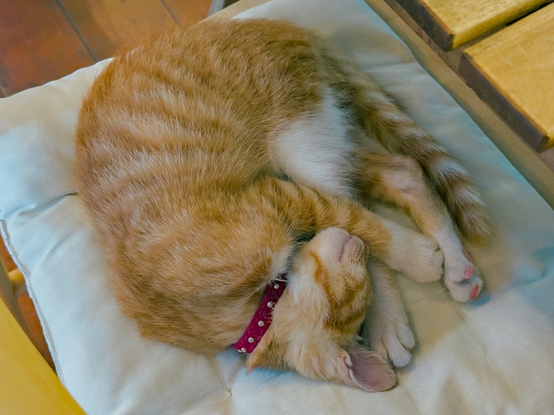 따뜻한 나무 향이 감도는 아늑한 실내는 혼자 방문하기에도, 누군가와 함께 시간을 보내기에도 적절하다. 이곳을 특히 좋아하는 이유 중 하나는 바로 귀여운 아기 고양이 때문이다. 아기 고양이가 평온하게 잠든 모습을 바라보고 있으면, 복잡한 생각도 서서히 가라앉는 것 같은 기분이다.