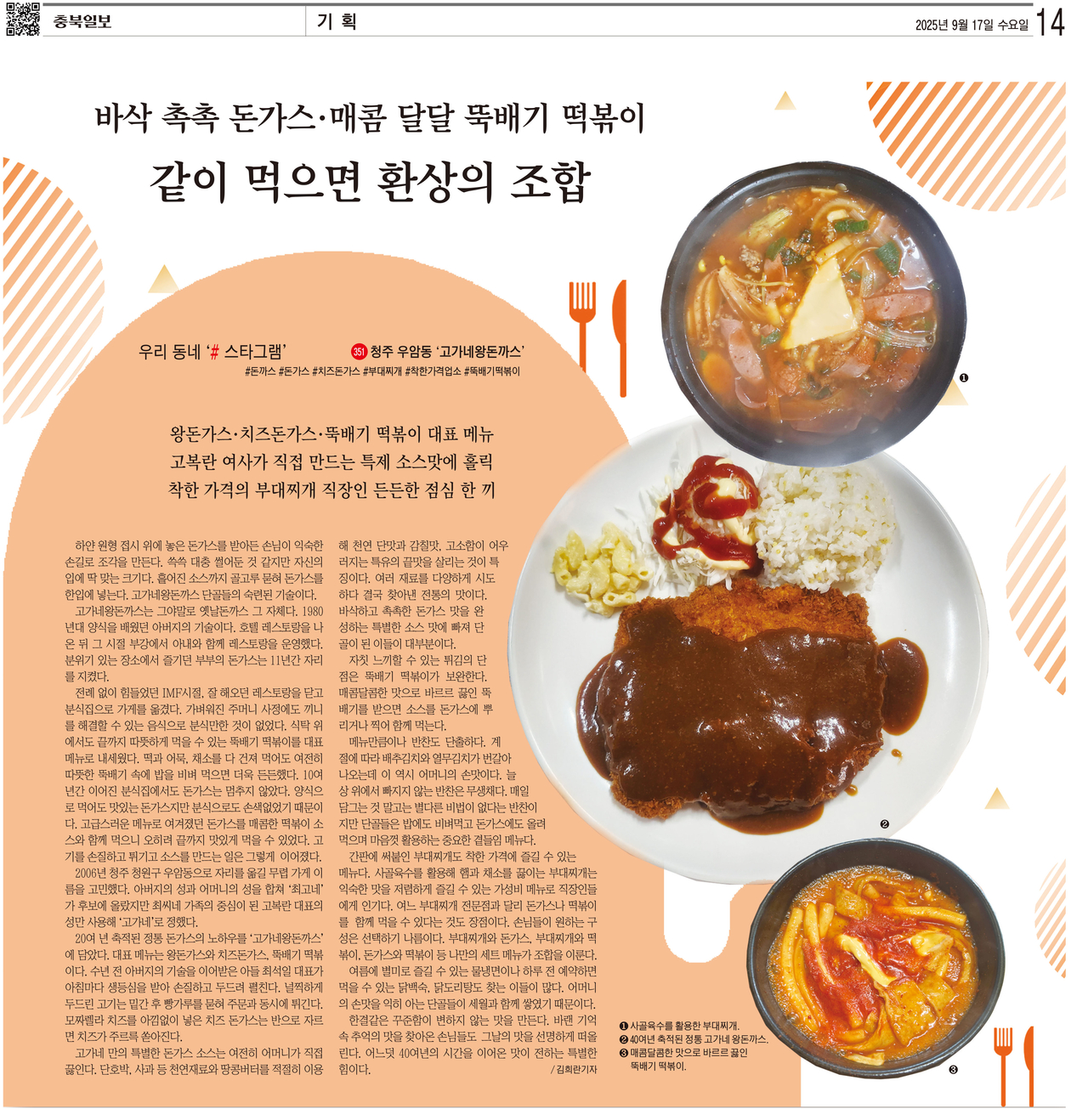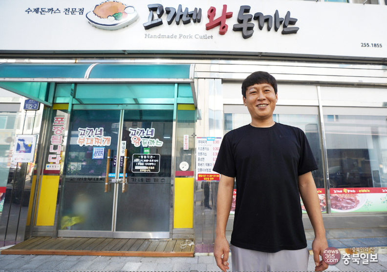 [충북일보] 하얀 원형 접시 위에 놓은 돈가스를 받아든 손님이 익숙한 손길로 조각을 만든다. 쓱쓱 대충 썰어둔 것 같지만 자신의 입에 딱 맞는 크기다. 흩어진 소스까지 골고루 묻혀 돈가스를 한입에 넣는다. 고가네왕돈까스 단골들의 숙련된 기술이다.