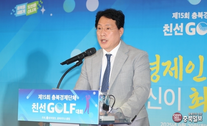 29일 청주시 청원구 오창읍 그랜드CC에서 충북일보와 충북리더스클럽이 주최한 15회 충북경제단체 친선 골프대회 시상식에서 이범석 청주시장이 축사를 하고 있다.