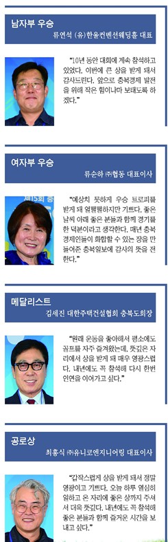 "예상치 못하게 우승 트로피를 받게 돼 얼떨떨하지만 기쁘다"며 "좋은 날씨 아래 좋은 분들과 함께 경기를 한 덕분이라고 생각한다. 매년 충북경제인들이 화합할 수 있는 장을 만들어준 충북일보에 감사의 뜻을 전한다"고 말했다.