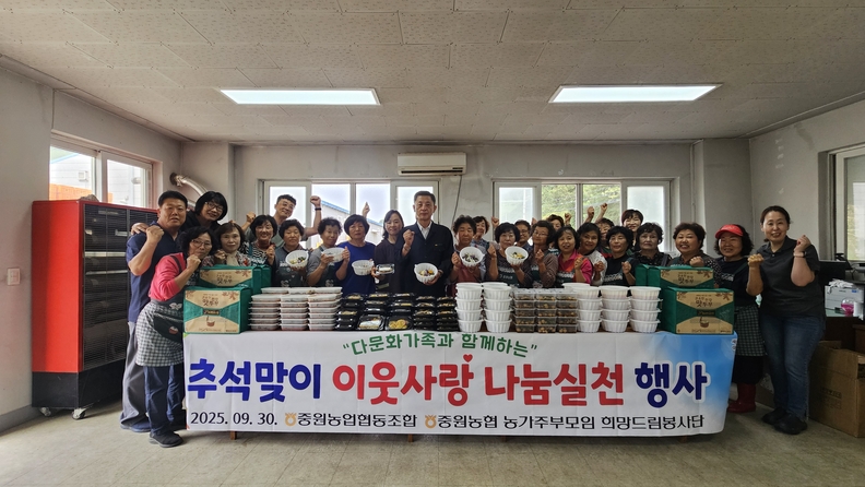 중원농협은 30일 다문화가족과 함께 지역사회의 사랑 나눔과 화합을 위한 '추석맞이 이웃사랑 나눔행사'를 실시했다.