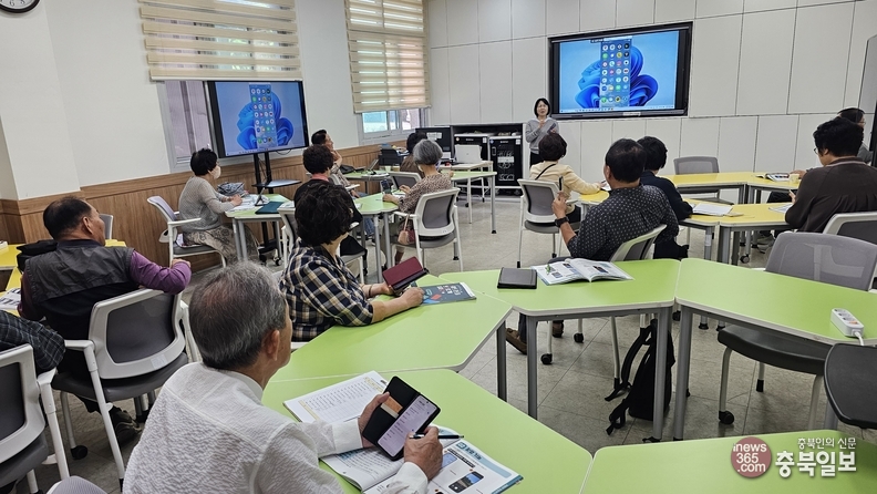 1일 가경노인복지관에서 ICT해피에이징 2기 서포터즈들이 교육을 받고 있다.