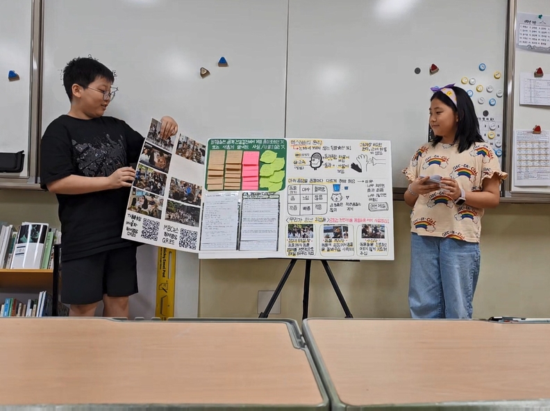 '2025년 충북과학창의대회 과학동아리 활동발표대회'에서 최우수상을 받은 청주내곡초등학교 백로날다7기 동아리.
