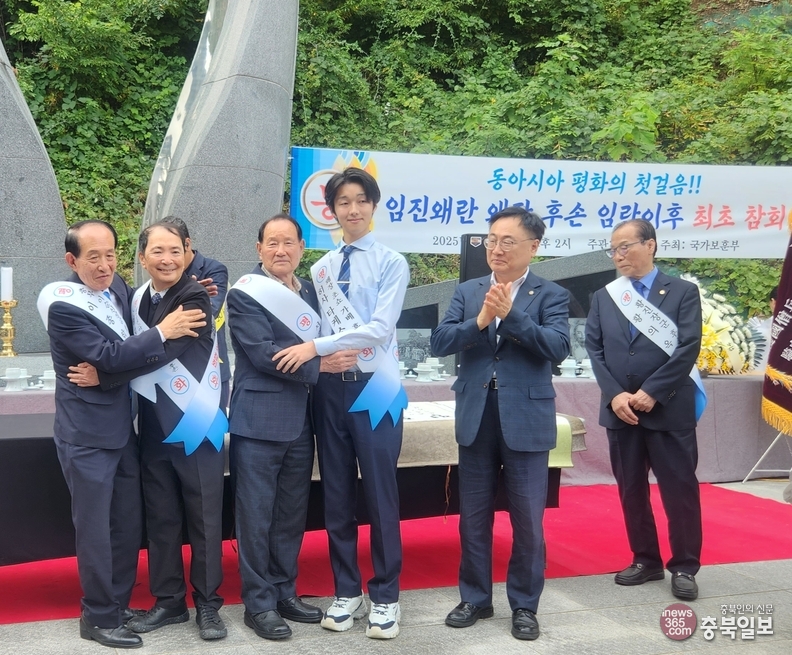 이날 열린 '광복 80주년 기념 한일 평화의 날' 행사에는 일본인 히사다케 소마(24) 씨와 히로세 유이치(70) 씨가 참석했다. 소마 씨는 임진왜란 당시 고니시 유키나가(小西行長) 휘하의 5진 소속 왜장 초쇼가베 모토치카(長宗我部元親)의 17세 손이며, 유이치 씨는 6진 소속 왜장 가라스마 구로노카미 미찌도모(烏丸九郎右衛門道友)의 17세 후손이다.