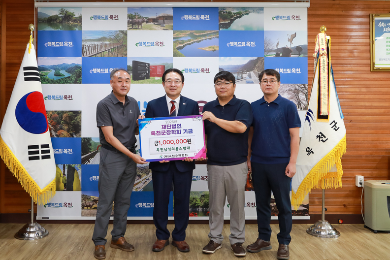 옥천남성의용소방대는 지난 10일 옥천군청을 방문해 (재)옥천군장학회에 장학금 100만 원을 전달했다. 이번 기탁은 2011년부터 매년 이어지고 있는 11번째 장학금 전달로, 지금까지의 누적 기탁액은 총 1,100만 원에 이른다.