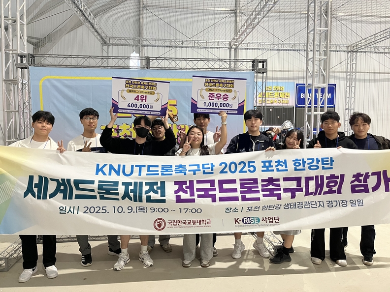 [충북일보] 한국교통대학교가 최근 포천시에서 열린 '2025 포천 한탄강 세계드론제전 전국드론축구대회'에서 준우승을 차지하며 드론스포츠 강팀으로서의 위상을 다시 한 번 입증했다.