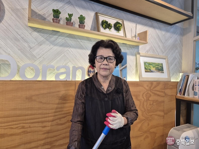 진천여성회관 미화원인 송계순씨가 인터뷰하며 포즈를 취하고 있다.
