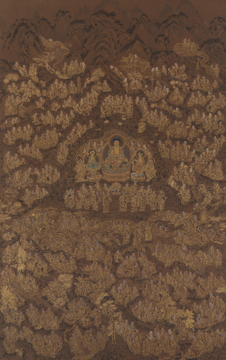 천태예술공모대전 대상 예상희씨의 불화작품 '금니석가삼존오백나한도'.