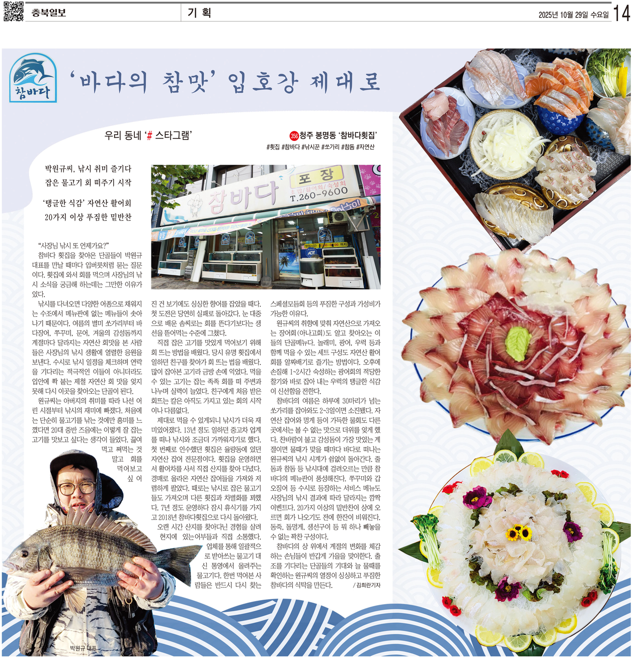 참바다 횟집을 찾아온 단골들이 박원규 대표를 만날 때마다 입버릇처럼 묻는 질문이다. 횟집에 와서 회를 먹으며 사장님의 낚시 소식을 궁금해 하는데는 그만한 이유가 있다.