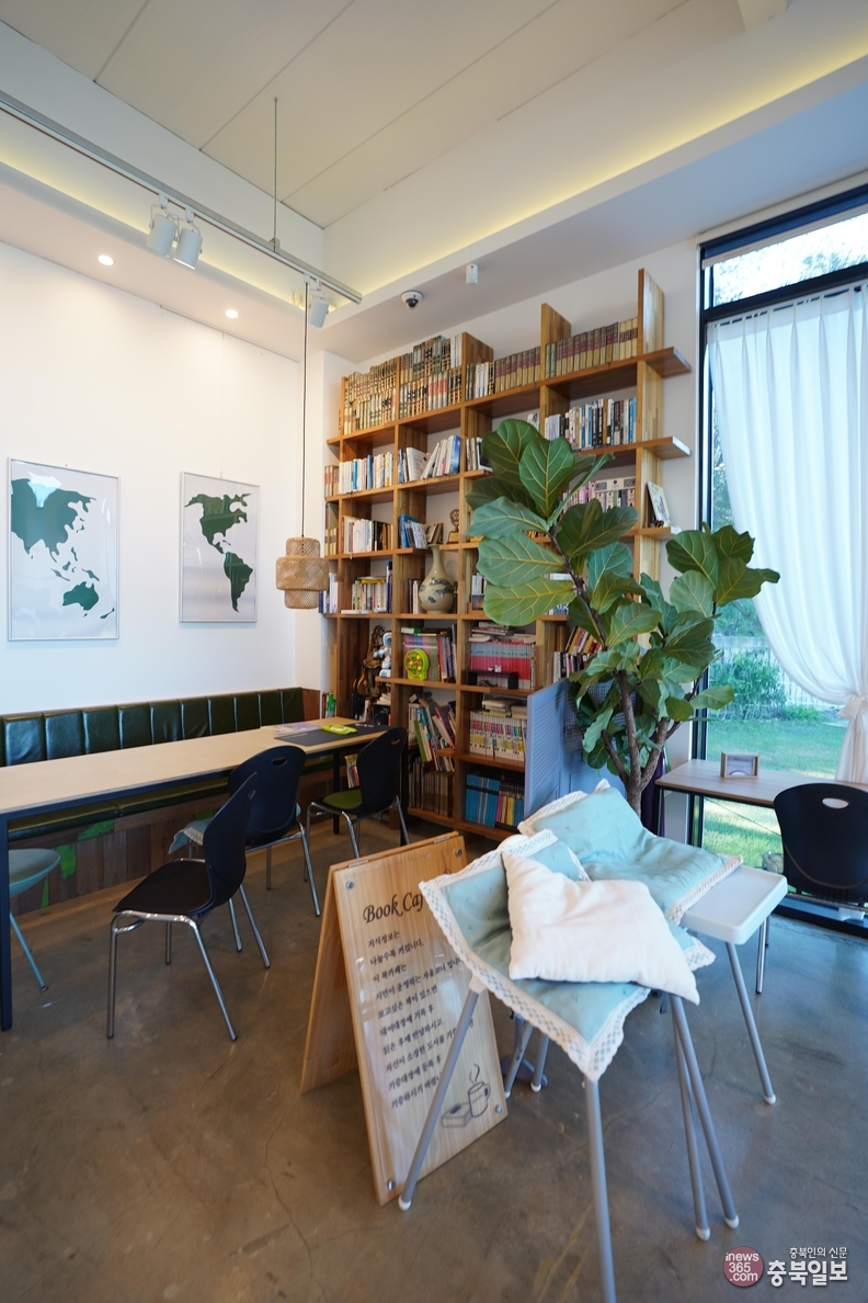 카페 한편에 마련된 책 읽는 공간은 손님들이 자발적으로 가져온 책들이 쌓여 작은 도서관을 이뤘다. 너른 잔디밭은 겨울이면 커다란 눈사람이 자리를 지키고 여름은 분수대와 간이 수영장을 설치해 손님들을 들뜨게 하는 놀이 공간이다.