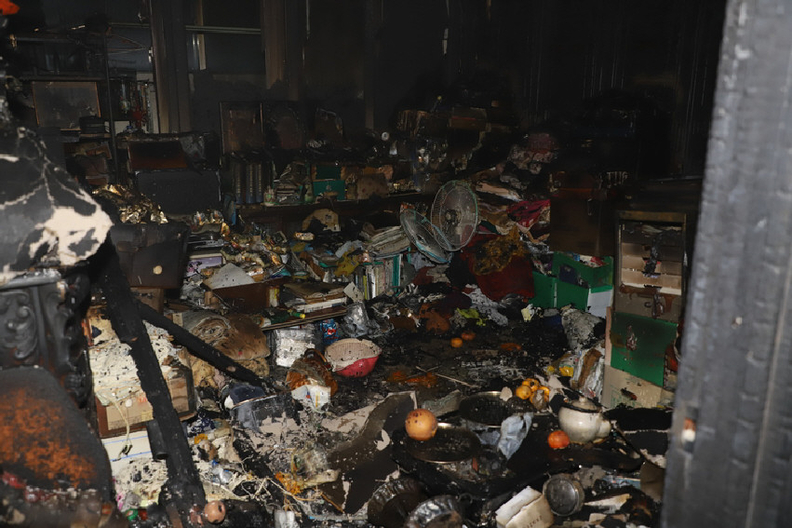 충주시 안림동 한 아파트에서 화재가 발생해 세대가 전소된 모습.