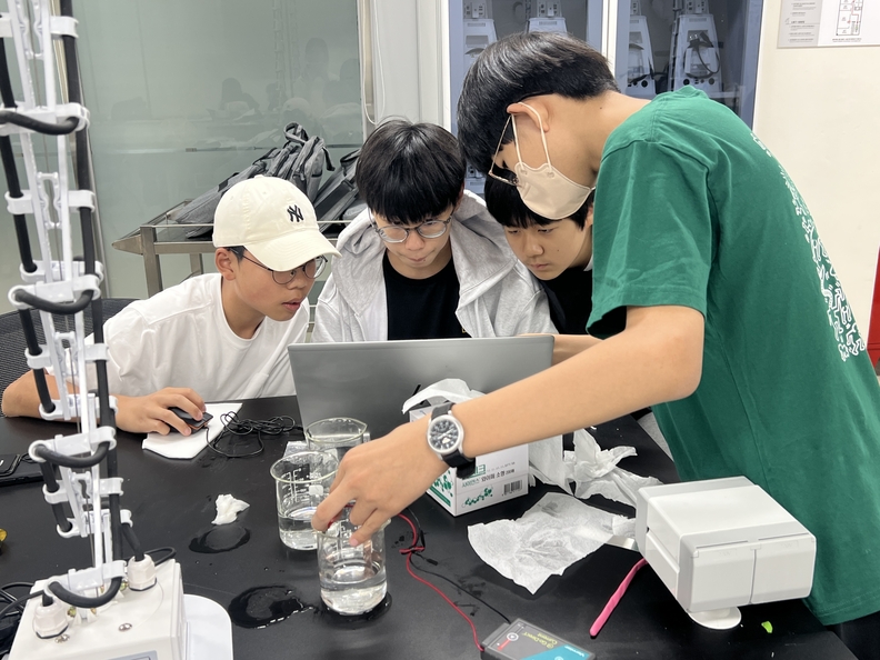 충북자연과학교육원 부설 영재교육원에서 영재교육을 받고 있는 학생들.