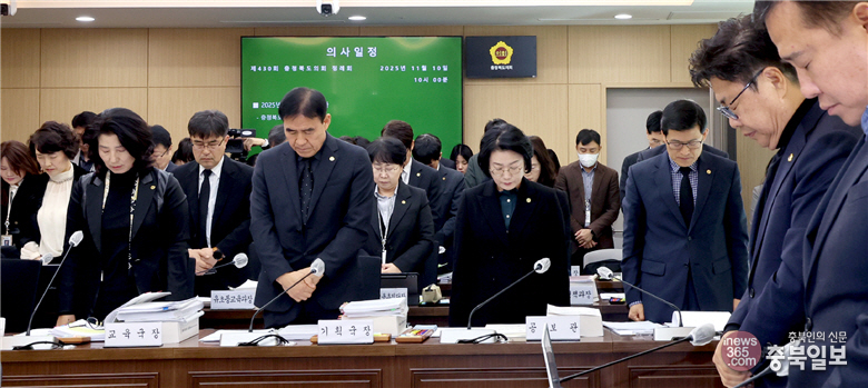 [충북일보] 충북도의회 교육위원회가 행정사무감사 기간 충북도교육청 공무원이 사망한 것과 관련 "고압적 태도나 과도한 질의로 인해 피감기관 공무원들의 자존감을 훼손하는 관행이 반복되지 않도록 행감 전반에 대한 개선책을 마련하겠다"고 약속했다.