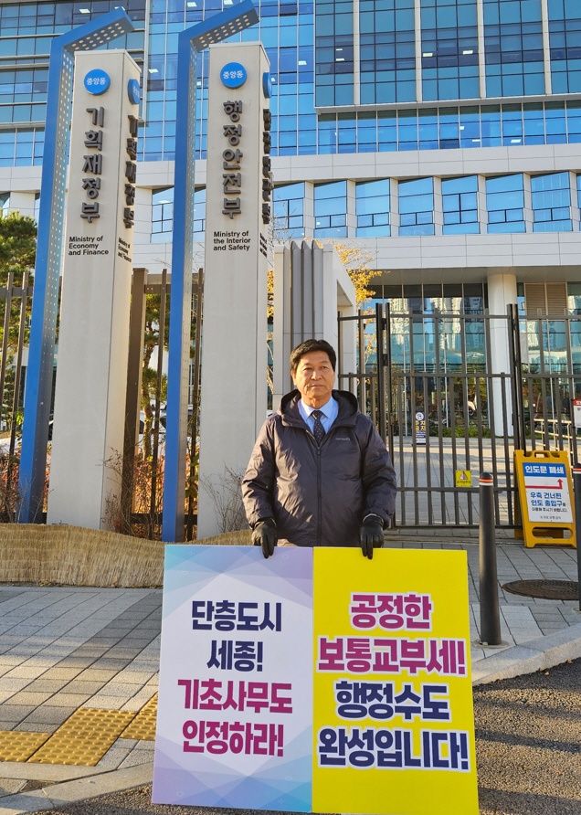 세종사랑 시민연합회 김문회 상임대표의 1인 시위 장면.
