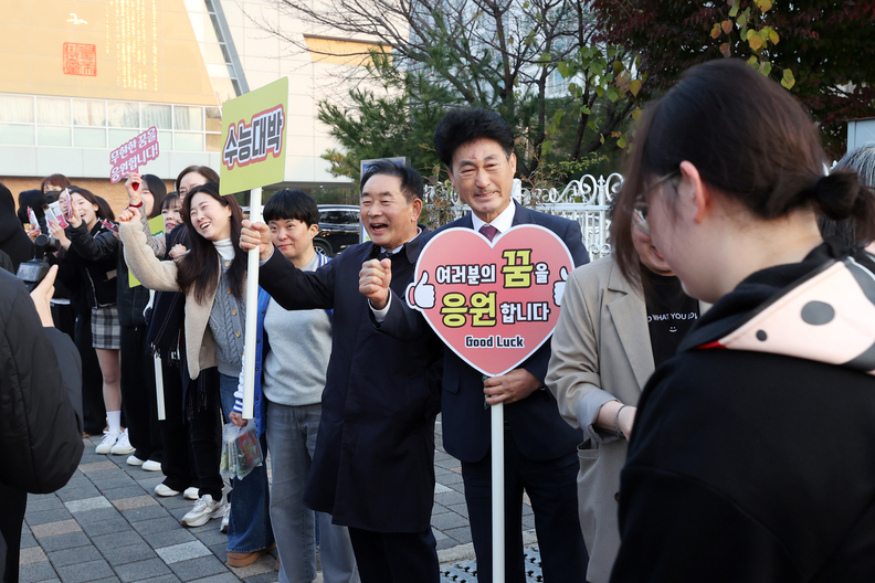 [충북일보] 이양섭 충북도의장은 13일 2026학년도 대학수학능력시험이 치러지는 진천 서전고 시험장을 찾아 수험생들을 응원.