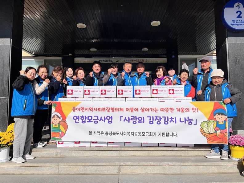 동이면지역사회보장협의체(공동위원장 김두용, 이문순)도 충북사회복지공동모금회 연합모금사업의 일환으로 직접 담근 김장김치를 취약계층 39가구에 전달했다.