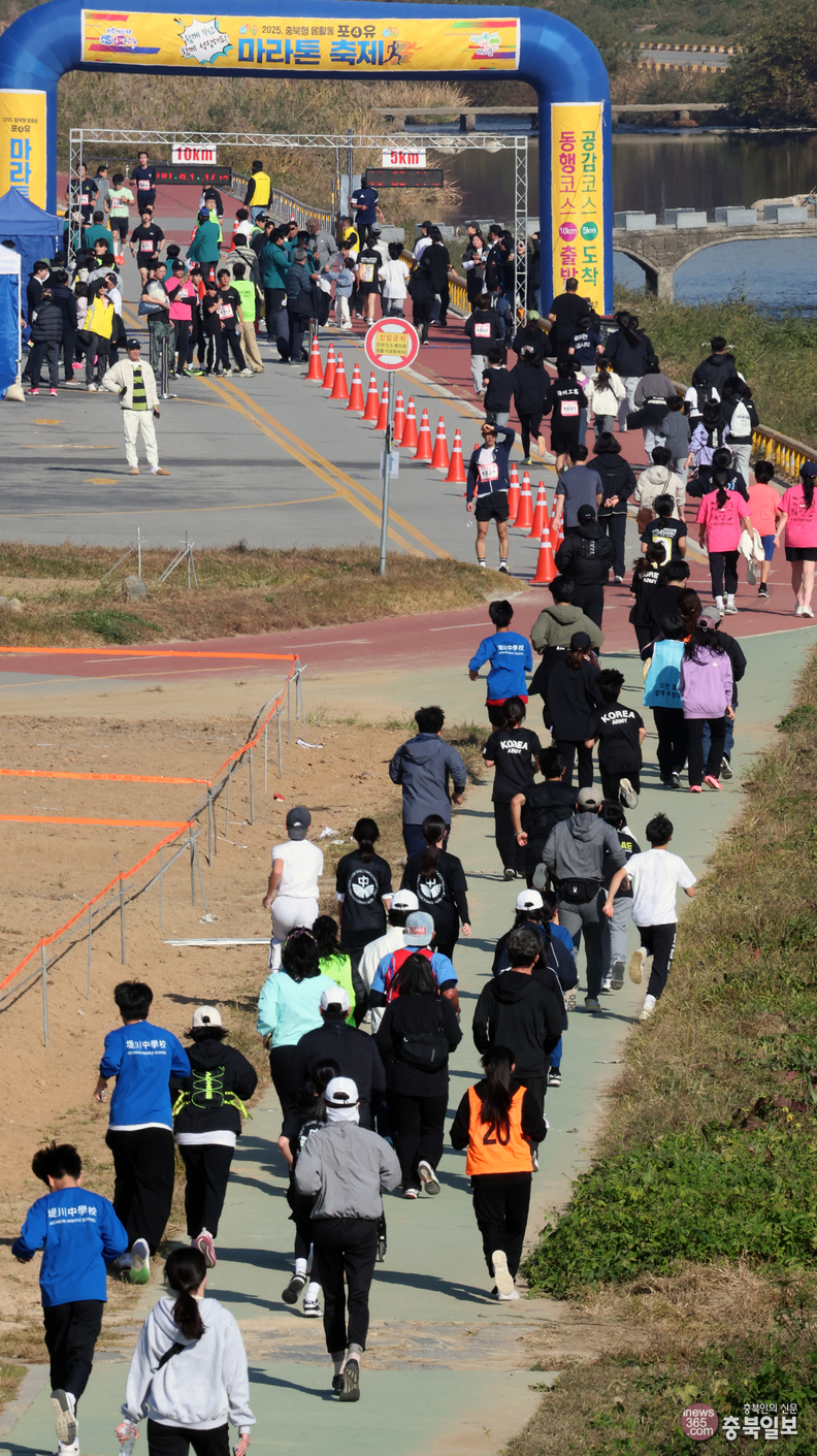 [충북일보] 충북지역 학생, 학부모, 교직원 2천여 명이 참여한 '충북형 몸활동 포(4)유 마라톤 축제'가 지난 15일 청주 무심천 일원에서 진행됐다.