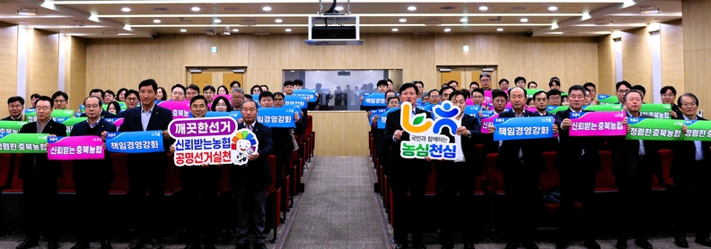 이명섭 농협중앙회 이사 조합장은 "충북농협은 언제나 농업인의 든든한 버팀목"이라며 "책임경영 강화와 깨끗한 선거문화 정착을 위해 충북 농축협 조합장들이 앞장서겠다"고 했다.