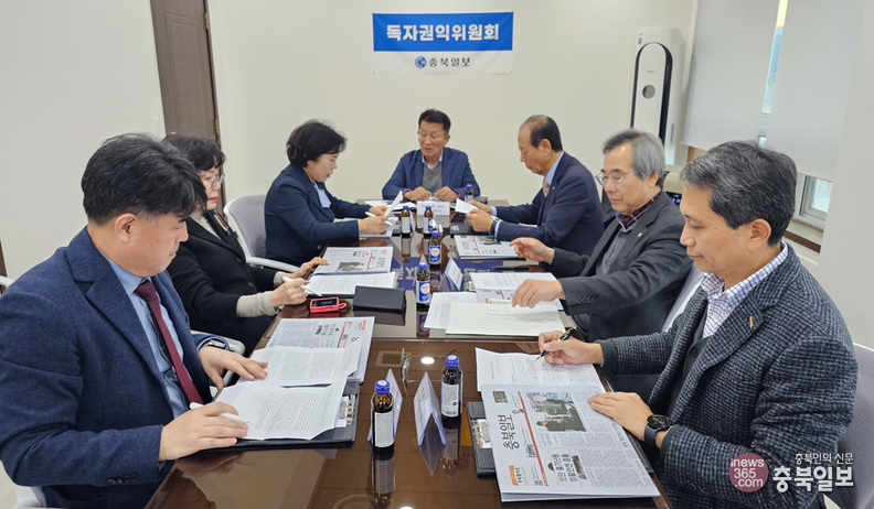 충북일보 독자권익위원회 11월 정례회의가 26일 본사 회의실에서 열려 김진현(㈜금진 대표) 위원장을 비롯한 위원들이 본보가 보도한 지면 평가와 개선 등에 대한 의견을 나누고 있다.