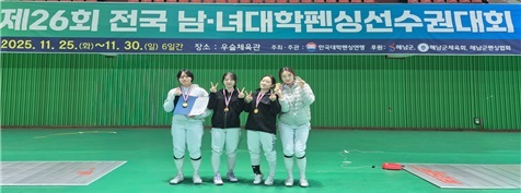 [충북일보] 괴산 중원대학교 펜싱부 가 최근 전남 해남군에서 열린 26회 전국 남·녀대학펜싱선수권대회에서 창단 7년 만에 여자 에뻬 단체전에서 금메달을 차지했다.