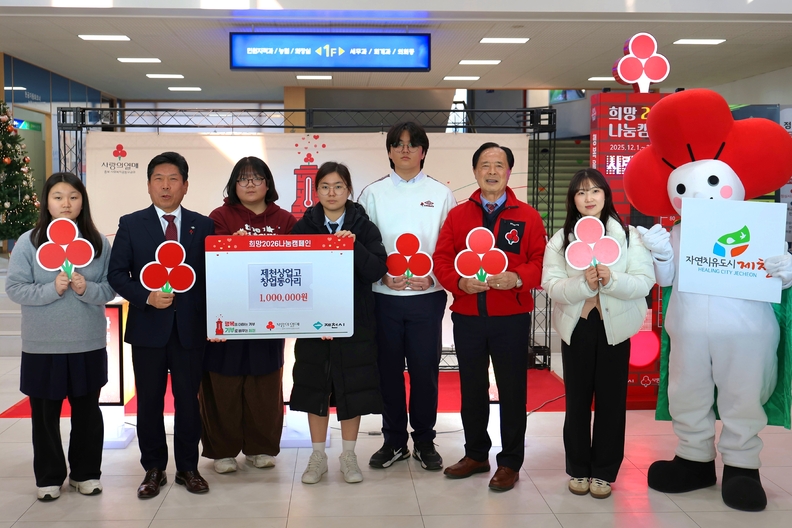 [충북일보] 제천상업고등학교 창업동아리 학생들이 직접 기획하고 운영한 창업 활동의 수익금 중 100원을 '희망2026 나눔캠페인'에 전달하며 지역사회 나눔 문화 확산에 동참했다.