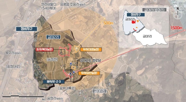 시는 올해 국비를 확보해 2029년까지 금대2리 일원 돼지 축사 1개소, 소 축사 2개소 및 폐축사 등 총 2만3천368㎡를 철거하고 복합문화체육시설, 마을공원 등 주민편의시설을 설치키로 했다.