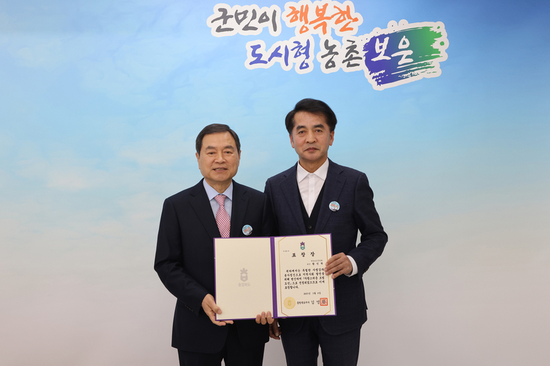 지난해 그는 충청북도에서 선정한 '자랑스러운 모범도민상'을 수상했으며, 보은군 공공기관 등의 유치위원회 고문으로 활동하며 중부내륙철도 보은지선의 국가철도망 반영 등 지역 현안에도 힘을 보태고 있다.