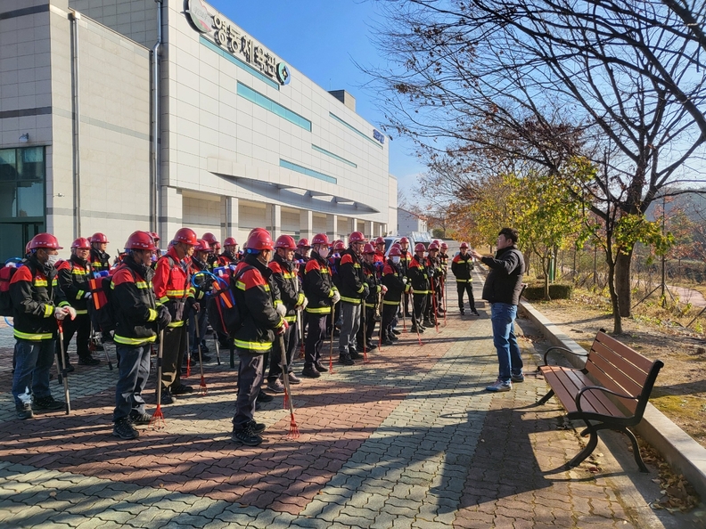 봄철 산불방지 대책 기간을 맞아 영동군 산불재난대응 인력들이 산불 초동 진화와 현장 대응 요령을 점검하고 있다.
