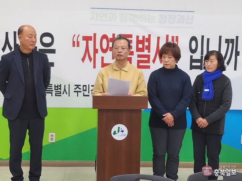 자연특별시 감사청구인단은 21일 괴산군청에서 기자회견을 열어 "괴산군민 233명이 연대해 괴산군의 도시브랜드 '자연특별시'와 관련한 주민 감사 청구를 지난 19일 충북도 감사관실에 냈다"고 밝혔다.