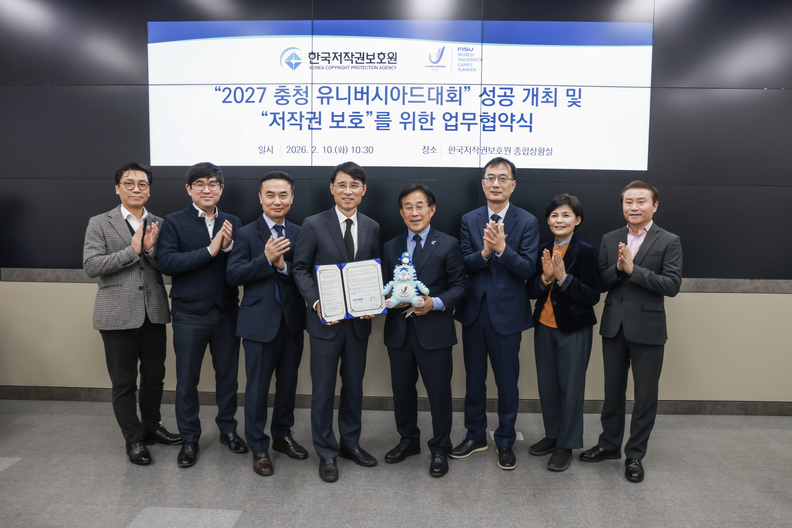 [충북일보] 2027 충청 유니버시아드대회 조직위원회는 10일 서울 상암동 한국저작권보호원에서 대회 콘텐츠 저작권 보호를 위한 업무협약을 체결했다.