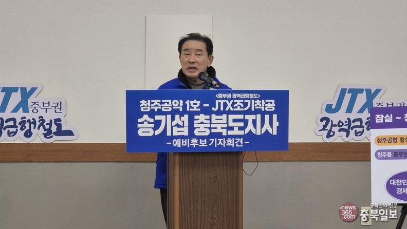 [충북일보] 충북지사 선거 출마를 선언한 송기섭 전 진천군수가 자신의 1호 공약으로 'JTX 청주-서울 연결' 공약을 발표했다.