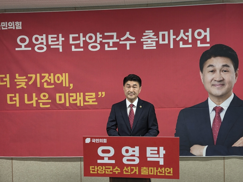 [충북일보] 오영탁 충북도의원이 10일 단양군수 선거 출마를 공식 선언하며 단양의 미래를 바꾸기 위한 혁신과 지역발전 전략을 제시했다.