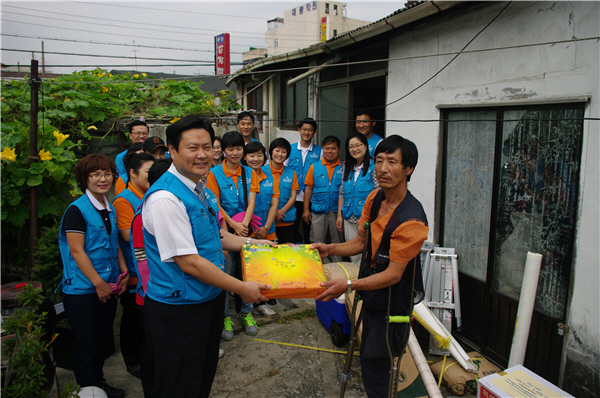 29일 청주 하나님의 교회 이우섭 목사가 관내 장애우 가정을 방문해 사랑의 선물을 전달하고 있다.