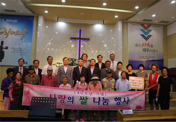 [충북일보=청주] 청주 한벌교회(담임목사 이용식)와 사직2동 주민센터는 28일 노인들을 교회로 초청해 점심을 제공하고 50명에게 20㎏짜리 쌀을 한포씩 전달하고 있다.