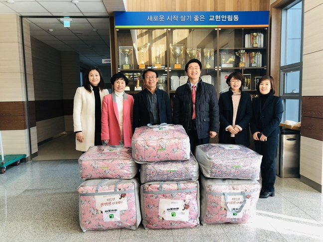 하나님의교회 세계복음선교협회는 30일 설 명절을 맞아 어려운 이웃에게 전해 달라며 이불 10채를 교현안림동행정복지센터에 기탁했다.