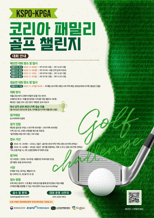 [충북일보] 에콜리안 제천골프장이 오는 11월 6일 열리는 'KSPO-KPGA 코리아 패밀리 골프 챌린지' 제천지역 예선을 갖는다.