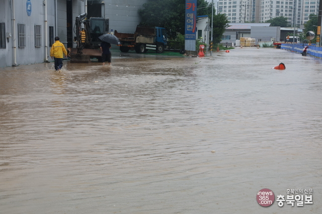 오전 6시 30분께는 흥덕구 신봉동 대성중학교 인근 저지대가 침수됐다.