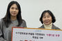 이학수(오른쪽) 명륜진사갈비 청주동남지구점 점장이 이상종 용암1동장에게 어려운 이웃을 돕기 위한 성금을 전달하고 기념촬영을 하고 있다.
