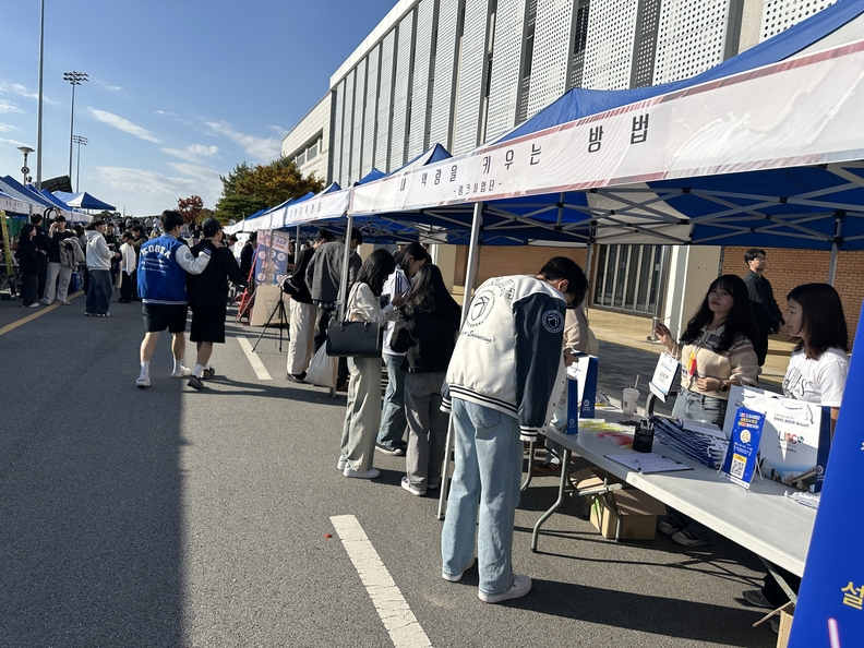 교통대 링크사업단이 국원대동제에서 사업단 홍보 부스를 운영하고 있다.