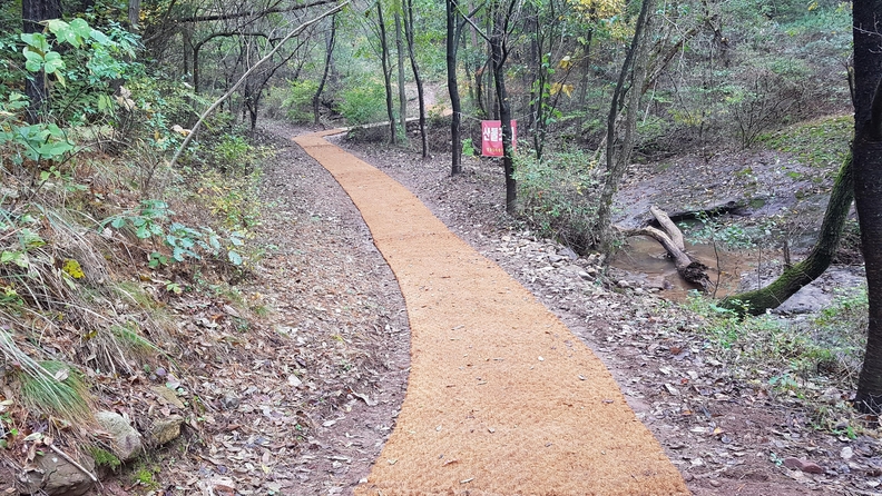 영동군이 주민들의 휴식공간으로 인기를 얻고 있는 무량산 등산로 5개코스를 정비하고 공개했다. 정비된 무량산 등산로 모습.