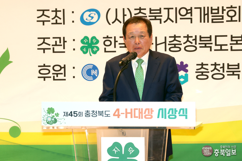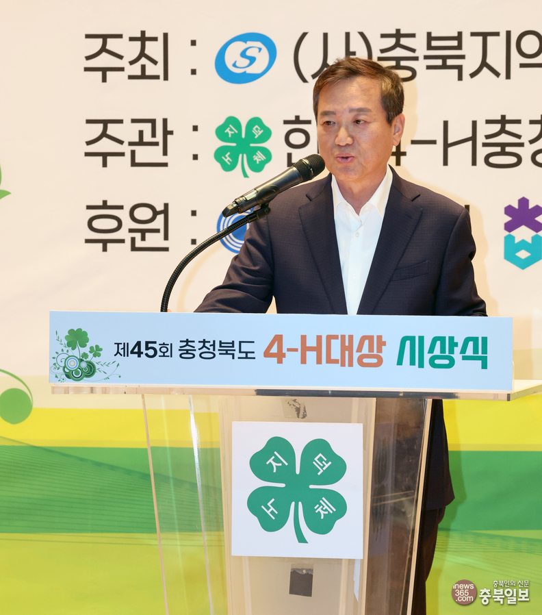 14일 충북도농업기술원에서 열린 45회 충청북도4-H대상 시상식에서 연경환 본보 대표가 축사를 하고 있다.