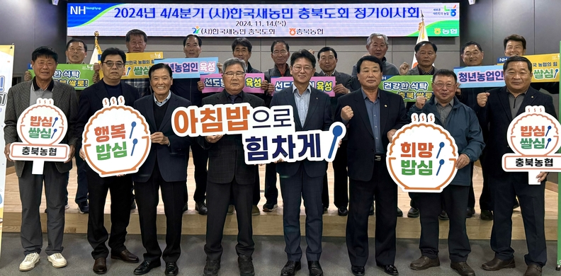 (사)한국새농민 충북도회 임원들이 이사회를 마치고 충북농협 임직원들과 기념촬영을 하고 있다.