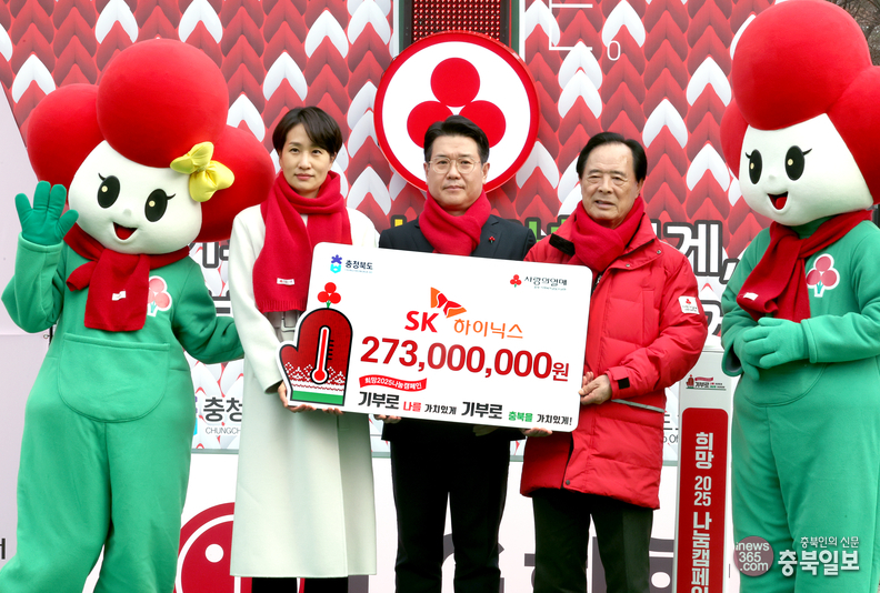 희망2025나눔캠페인 출범식이 충북사회복지공동모금회 주관으로 2일 청주 상당공원에서 열렸다. 이날 출범식에서 SK하이닉스가 성금 기탁식을 갖고 있다.