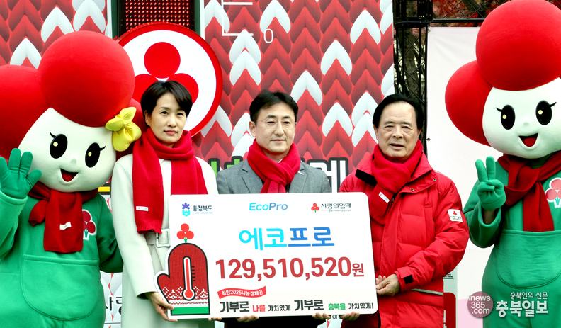 희망2025나눔캠페인 출범식이 충북사회복지공동모금회 주관으로 2일 청주 상당공원에서 열렸다. 이날 출범식에서 에코프로가 성금 기탁식을 갖고 있다.