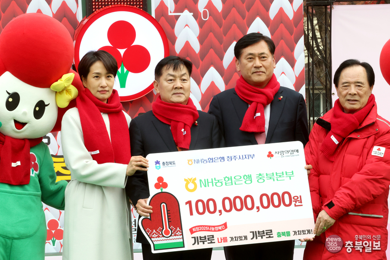 희망2025나눔캠페인 출범식이 충북사회복지공동모금회 주관으로 2일 청주 상당공원에서 열렸다. 이날 출범식에서 NH농협은행충북본부가 성금 기탁식을 갖고 있다.
