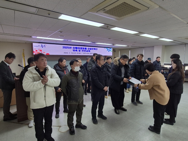 충주시 유해야생동물 상설포획단 관계자들이 위촉장을 받고 있다.