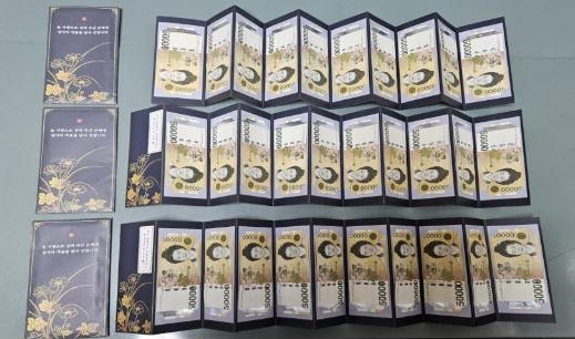 새마을금고 이사장 입후보예정자 A씨가 회원 3명에게 건넨 현금과 봉투.